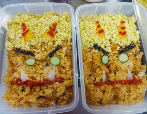節分には鬼をかたどったチキンライス、